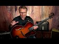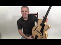 Tolle Jazzgitarre - Spitzenmodell Neck Material: Maple Fingerboard: Ebony Fingerboard Radius: 12" Nut Material: Bone Nut Width: 1 3/4" Fretwire: 20-Jescar FW47104-P Scale Length: 25" Body Style: Pisano Body Dimensions: 16" X 2 3/4" Body Top: Solid Hand Carved Spruce Body Back/Sides: Hand Carved Flame Maple Cutaway: Yes F Holes: Yes F Hole Binding Material: 5-ply figured maple Head Cap Veneer Material: Rosewood Truss Rod: Single Acting Headstock Style: Pisano Binding Material: Multi-ply Wood Logo: None Logo Material: None Inlay: Pisano Signature Inlay Material: Maple Side Dot Color: White Hardware Color: Gold Pickguard: Yes Pickguard Material: Ebony Tailpiece: Pisano Style w/ Frog Inlay Tailpiece Material: Rosewood/Ebony Bridge: Rosewood compensated, 2 3/32" Spacing Tuners: Schallers SG360-EN01GG Neck Pickup: Kent Armstrong Pisano Signature