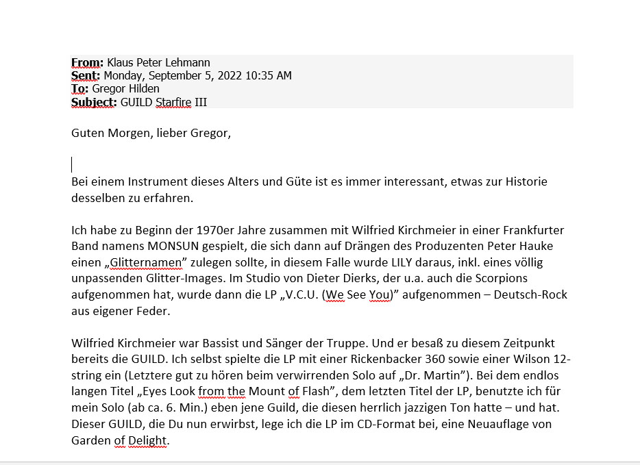Wonderful guitar - I just had it freshly fretted - so the neck is perfectly playable!!! For the "experienced history" can be found a mail from the previous owner - see Pics 3