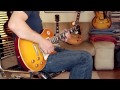 2014 Gibson Custom Shop 1958 Les Paul Collector's Choice CC-15 "Greg Martin". Gibson's Collector's Choice series meticulously recreates specific, well-documented Les Pauls owned by renowned collectors and players. CC-15 is a breathtaking recreation of Kentucky Headhunters guitarist Greg Martin's 1958 Les Paul, featuring a faded "Dirty Lemon Burst" finish, custom-wound Alnico III Custom Buckers, etc. Nice light weight at just above 4 kgs, medium C-shaped neck just like a 59-style profile. On this one I removed the pickguard - looks nice with the different shade of red underneath. Detailed specs from the Gibson website. By the way, in the meantime, master player and Wildwood reviewer Greg Koch bought one for himself: Price: € 5,499 (incl. 19% turnover tax) - comes with original brown Custom shop case, accessories, certificate.