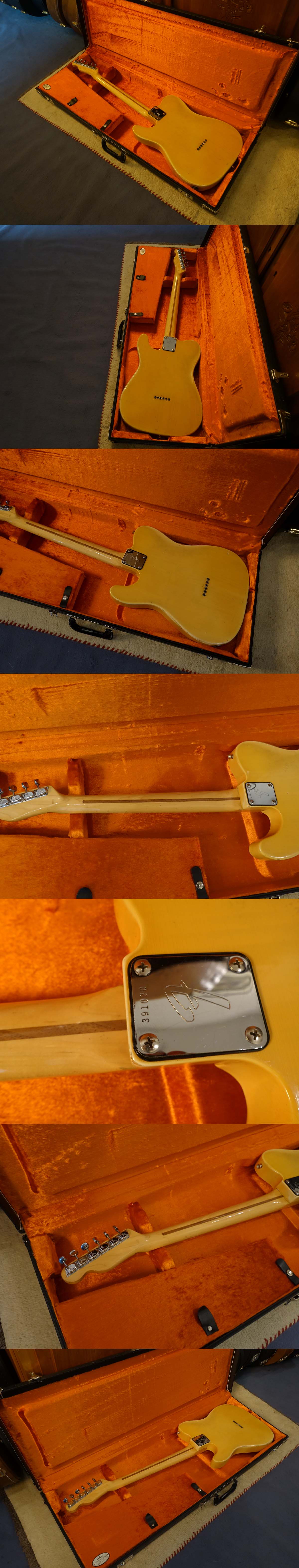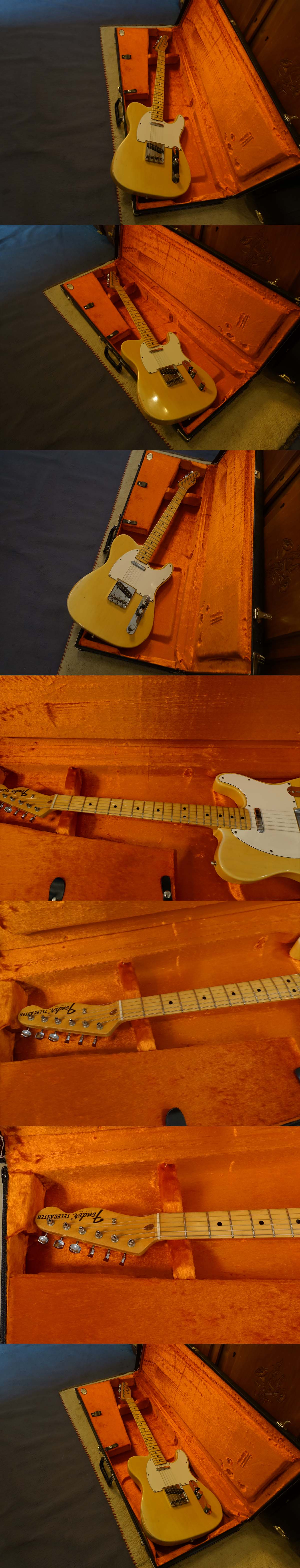 Very nice Tele! The blond finish has some fine weatherchecking and faded to a nice smokey "dark blond" which gives that guitar a nice vintage appearance. Medium neck profile, solid ash body. Not exactly light weight at 4 kgs, but it sounds superb! Has the desired pre-74 grey-bottom pickup with staggered polepieces in the bridge! Pickup and pots are dated to 1973. + + + Comes in a black Custom Shop Fender tolex case w/orange interior.