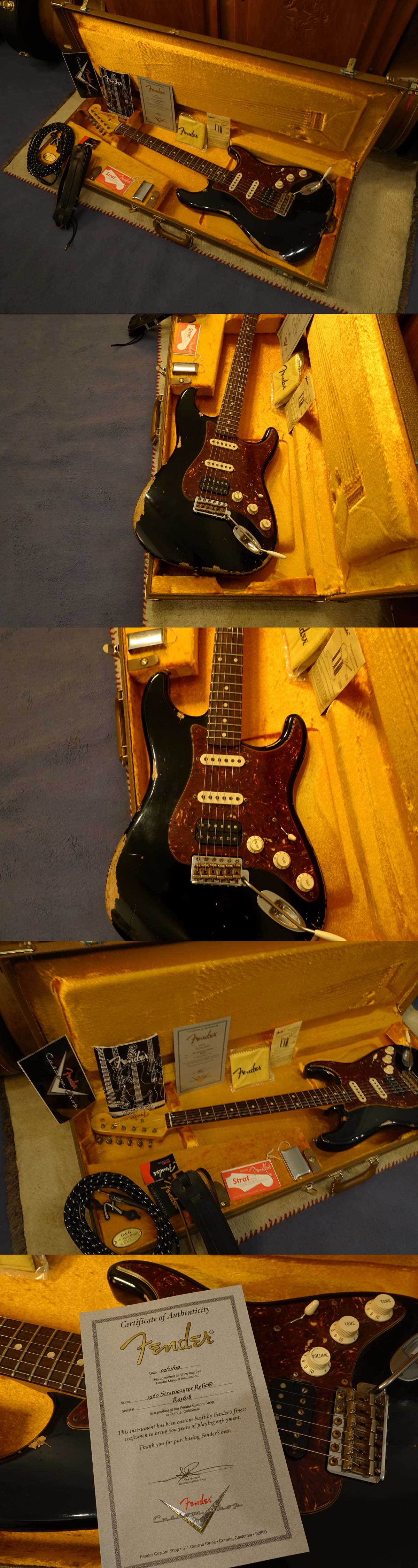HSS-1 version: the humbucker in the bridge position can be switched to single-coil mode via the push button inside the volume knob. Condition as new, fantastic sound, comfortable neck profile featuring 9.5" fretboard radius, Dunlop 6105 frets. + + + Comes with original Custom Shop case, accessories, certificate. (Note: I sold this one previously in 2011, hence the older videos, but the pics are new, the instrument still is in top condition!)