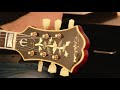 A rare Epi built by Gibson - with a dream sound, great looks and first class playability thanks to just renewed medium jumbo frets and a nice medium neck format. The guitar originally had mini humbuckers, now newer Gibson PAFs are built in - sound really great! Furthermore the trapeze tailpiece was exchanged for a stoptail, the original part is included. Also new, aged Kluson-Waffleback were used. There is a mini-repair from a small break at the headstock - but it is hardly to see and can't be felt. One of the original potentiometers was not working and was replaced. The defective one is in the case, and here the dating to 1969 can be confirmed again. The guitar looks like it is absolutely harmonious and comes across with a lot of vintage mojo - but costs as much as a new Custom Shop Gibson! By the way, the guitar has been lying here for weeks now, because I couldn't bring myself to offer it for sale yet... but since I already have a lot of old Gibsons and Epis, I made the decision now. Incl. original case